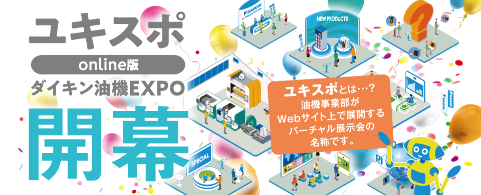 ユキスポ~Online版 ダイキン油機EXPO~が開幕しました。限定コンテンツや期間限定でプレゼントがもらえるアンケートもご用意しております。ぜひご来場ください。