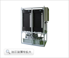 大物加工用縦型マシニングセンタの高速高精度を確保する主軸冷却用のオイルコンを2台搭載したタンク付きユニットです。