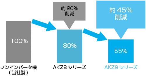 ダイキン独自のIPMモータと高COP特性の冷媒R410A採用により高い省エネ率を実現。